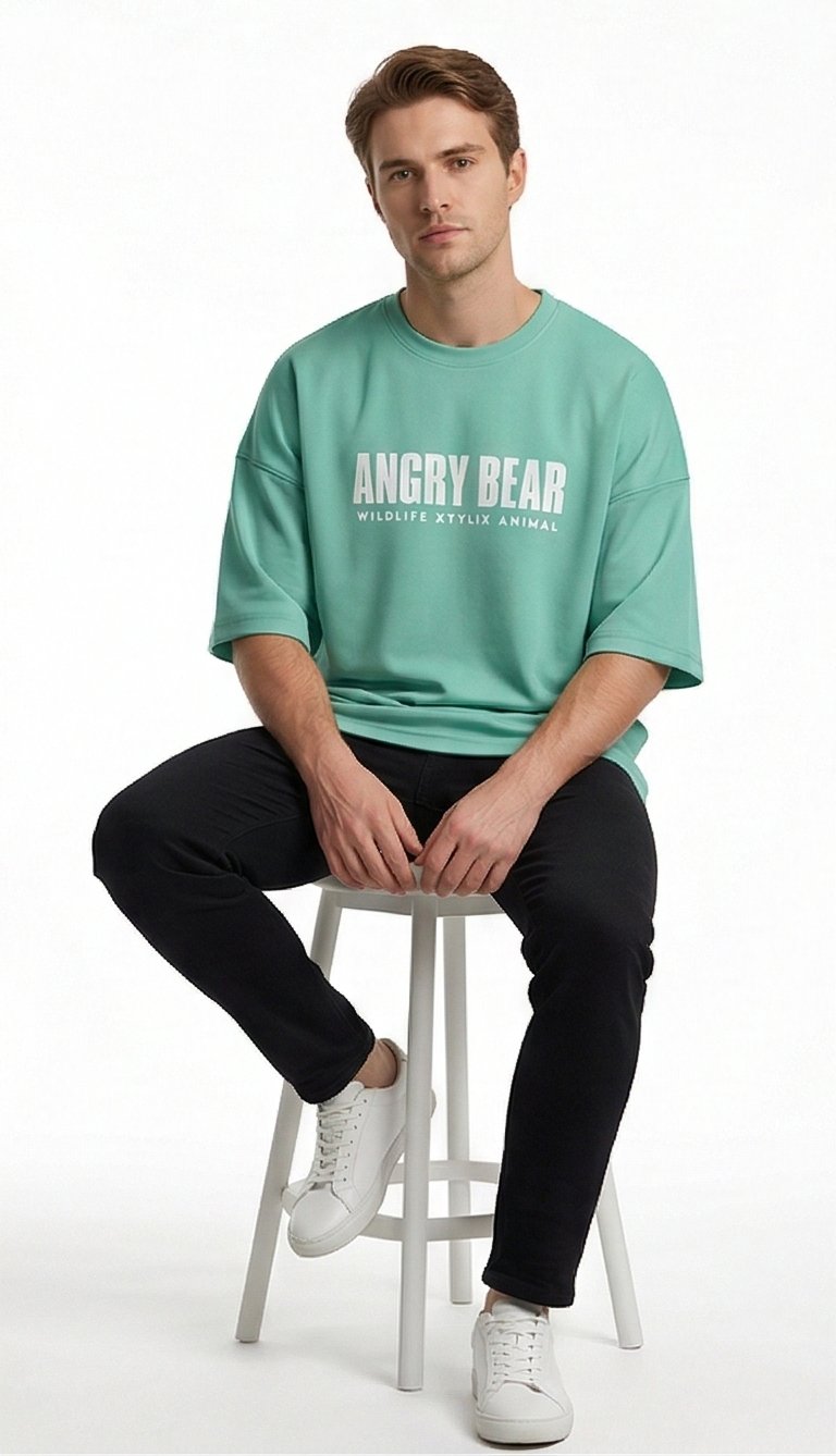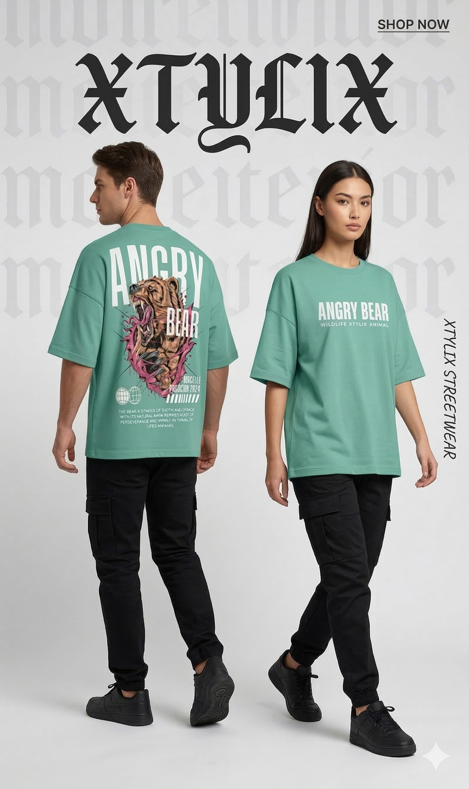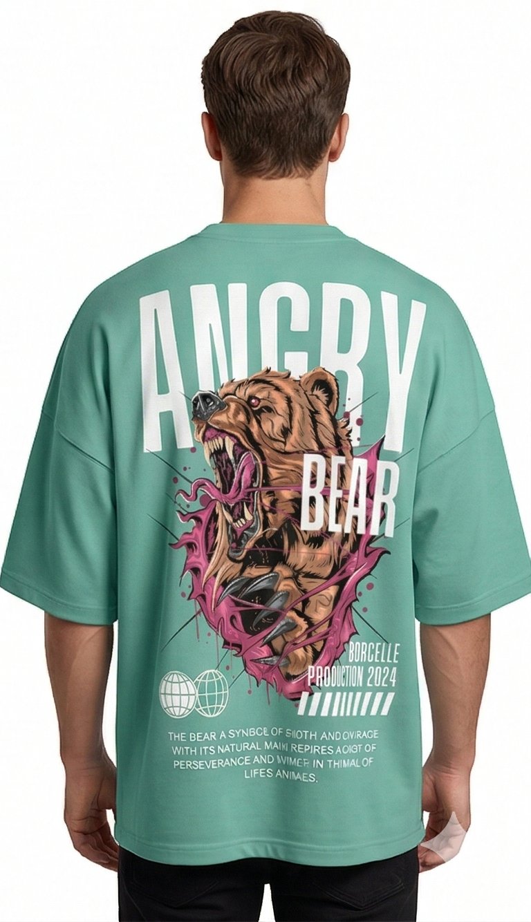 • This item: XTYLIX Angry Bear Oversized T-Shirt for Men/Women | Premium Cotton Graphic Printed Round Neck Streetwear T Shirt Mint Green